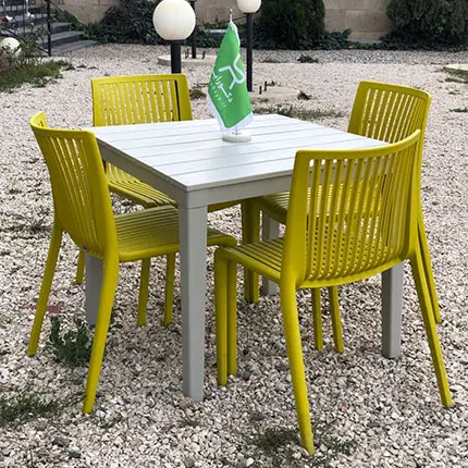 ست چهار نفره میز و صندلی کول و تیکا مناسب برای استفاده رستوران و کافی شاپ میباشد . از مهم ترین مزایای این ست میز و صندلی نشکن و فاقد رنگ پریدگی در مقابل نورمستقیم آفتاب میتوان اشاره کرد . همچنین صندلی کول و میز تیکا دارای تحمل وزن بالایی میباشد .